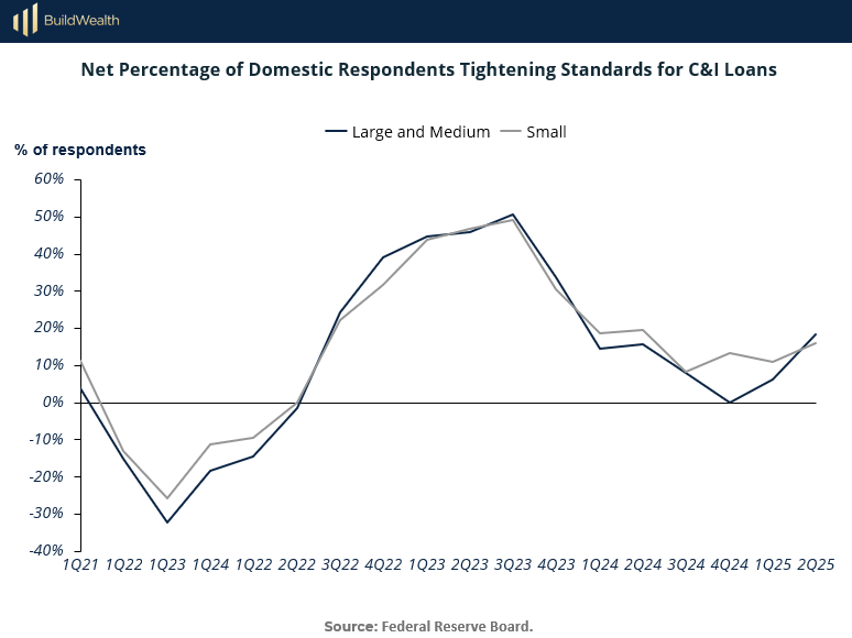 The clearest signal of systemic change began to emerge in the aftermath of the pandemic. Starting in early 2021 and accelerating dramatically through 2022 and 2023, U.S. banks reported increasingly tight lending standards for commercial and industrial (C&I) loans. This trend, tracked meticulously by the Federal Reserve’s Senior Loan Officer Opinion Survey, paints a striking picture of an industry stepping back from its traditional role as the lifeblood of corporate credit. By Q3 2023, more than 50 percent of surveyed banks had tightened their lending criteria for large and medium-sized businesses. This level of synchrony is rare and speaks not to idiosyncratic risk assessments, but to a coordinated shift in institutional behavior. Banks, faced with inflationary pressures, heightened regulatory scrutiny, and the specter of depositor flight following high-profile bank failures, adopted a risk-off posture that persists into 2025.