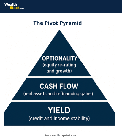 Each layer funds the next as liquidity increases. The structure ensures that cash flow supports reinvestment rather than waiting for macro clarity.