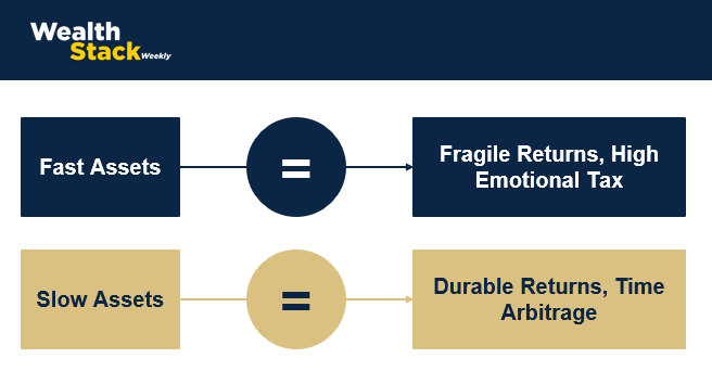 Institutional investors, like endowments, family offices, or sovereign wealth funds, have understood this for years. They know speed isn’t going to boost returns, they want slower acting assets.