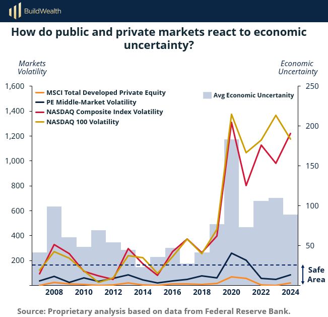 And panic is what happens in a crisis. In both 2008 and 2020, during COVID, public markets cratered in days because liquidity gave capital an instant escape hatch. Meanwhile, private markets? Well they stayed steady and calm—not because they’re immune to risk, but because they’re designed to ignore the noise and focus on execution.