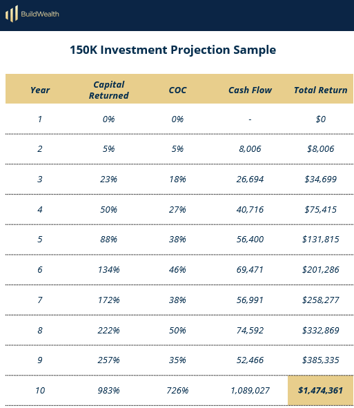 Here’s a projection for a sample $150,000 investment: