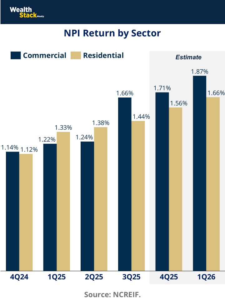 Across residential and commercial real estate, expected returns in 2026 skew toward in-place income with optional appreciation happening slowly, over time. That shift reflects a healthier market structure.