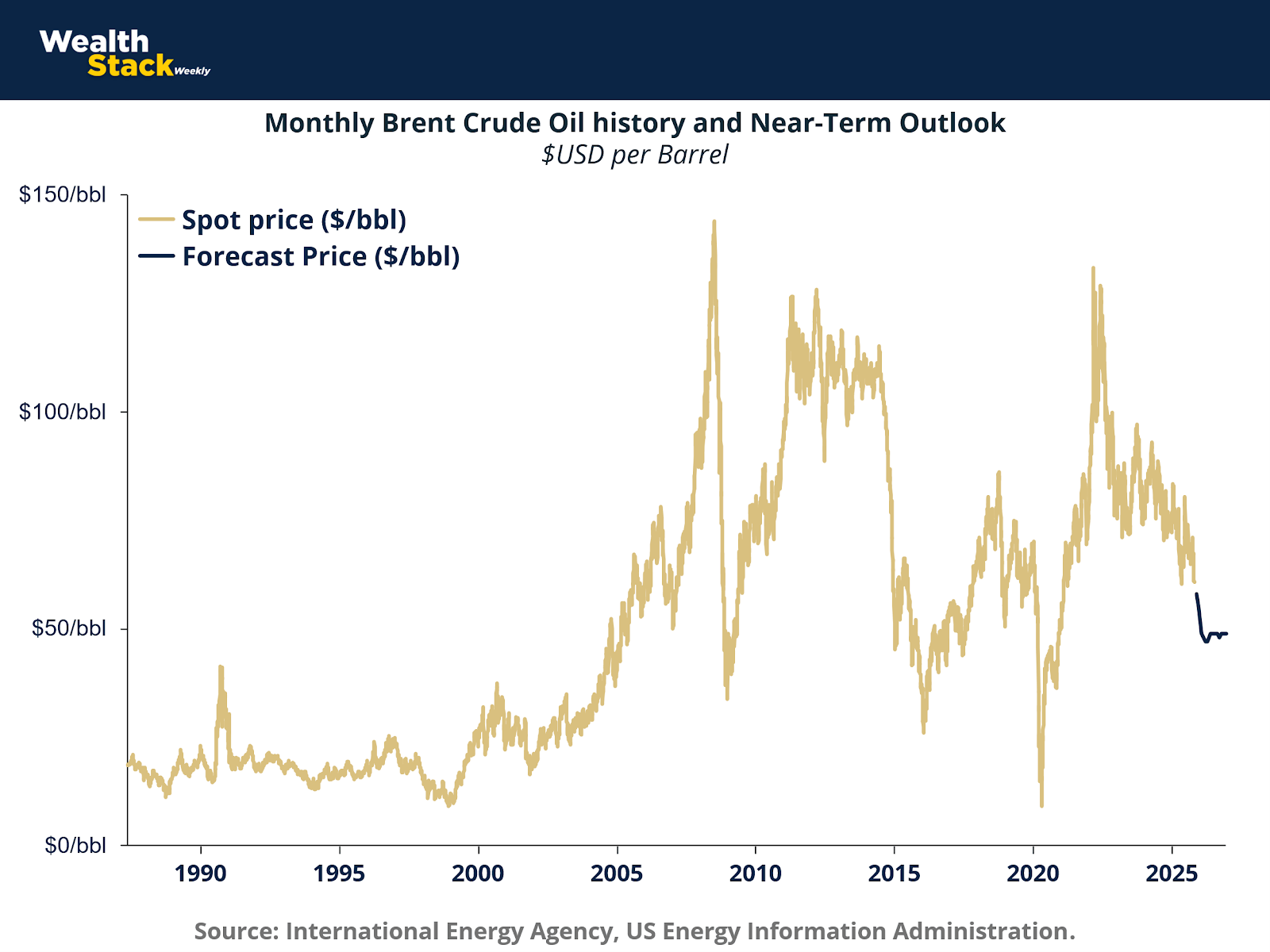 As shown above, Brent Crude prices have exhibited strong cyclical behavior since the 1990s, characterized by geopolitical shocks, supply constraints, and rapid demand recovery phases. Current forecasts anticipate an average Brent price near $62 per barrel by late 2025, softening toward $52 by 2026. This expected moderation reflects increasing inventories and global production recovery, particularly outside of OPEC+ nations.