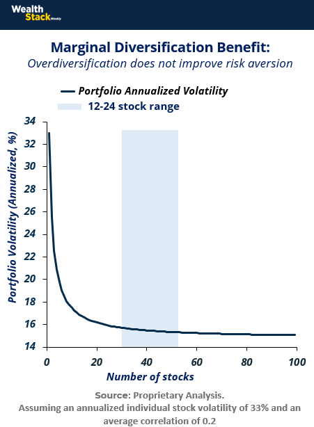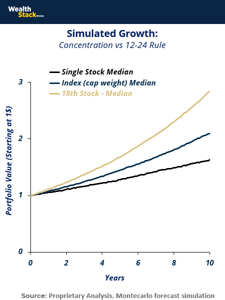 This is the principle behind the 12–24 Rule™ — portfolio concentration calibrated for endurance. It marks the line where diversification’s benefits plateau and conviction begins to compound.